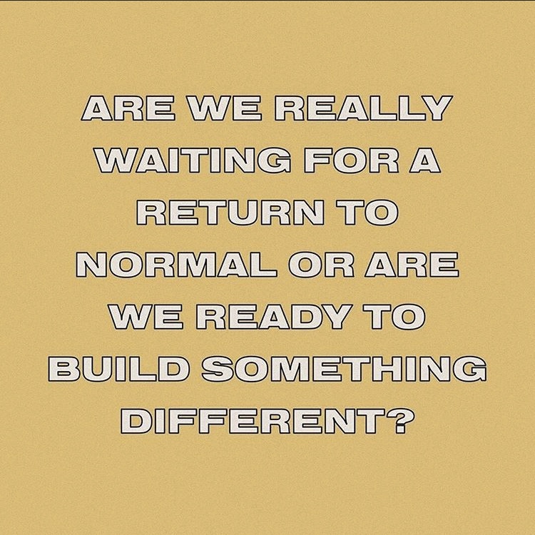 How about you, do you want to return to what we’ve all conceded to life as we know it? Think real hard, ALL THE WAY BACK to three months ago. Memories are getting shorter by the day but I’m fairly certain that if we were being honest with ourselves we’d admit that life before quarantine sucked, too. Yes, it was a very different kind of shit storm than the one we’re currently experiencing, but it sure as hell didn’t include leisurely walks outside with the boyfriend or the slightest notion that I’d find time to perfect a pie crust. I still haven’t binge watched Game of Thrones but I like feeling that I could binge watch Game of Thrones. Pre-pandemic days didn’t have regular check ins with friends to see if they were ok because we just assumed that they were. There were no surprise front door deliveries of baked goods, booze or flowers to cultivate a sense of connection and share a smile. It’s been encouraging to see what is possible when we are given permission to slow down and make time for ourselves and the ones we love. Instead of rushing off to all our obligations, we’re consciously engaging with people we care about through simple pleasures like puzzles and cooking and conversation. We’re getting creative with our entertainment – by generating new outlets and adapting old ones. People are sewing again! Ok, it’s for masks, but still! Listen, I don’t want to be stuck in a world in which every moment is colored by the fear of a super-virus; where the nightly news updates the death toll stats like we’re living in a damn Suzanne Collins novel. But I also don’t think it’s too much to ask for a world that doesn’t make us choose between our lives and our livelihoods. I fear reopening because I fear returning to an existence devoid of time to enjoy and explore the life we’ve been given. As others rush to get back to their church services, restaurants reservations and business meetings, I mourn freedom and possibility and another project that will likely turn into an unfinished orphan. I don’t want to be so excited to return to the normal days that we sacrifice what could actually be better ones. We’ve gained a lot of good in this bad time – don’t let it be in vain.