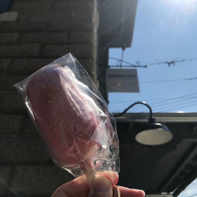 After departing our usual Owowcow shop, the adventure truly began as we were now venturing into uncharted territory. TripIt directed us along the brief, next leg of our ice cream expedition to Chalfont. We arrived unscathed at the large, stone firehouse that had been transformed into the most recent addition to the Owowcow empire. After passing a graveyard rendered innocuous by the midday sunshine and locating a place to deposit the car without issue, we discovered an immense chalkboard heralding the current flavors of the day. This information was vital in achieving the least amount of time indoors and therefore increased our ability to safely social distance. Once inside, however, we realized that this precaution was mostly unnecessary as our presence only doubled the number of individuals who occupied the impressive structure. Selections were made quickly – another flight of entirely new flavors for my companion and an ice cream pop that resembled an epicurean Good Humor bar for me – then we followed the single path out of the building and rounded back to our vehicle. Here is where we were most tempted to deviate from our course and adjourn to nearby Peace Valley Park; a locale which sounds like an ideal place to spend some quarantine time. Alas, our frozen treats began to give out well before our commitment to our cause ever could. The sweltering heat was merciless and demanded immediate ice cream consumption which did not allow for a detour. Under the shade of a large oak, we furiously ate our delectables while they maintained some solidity and us some dignity. As we did, fellow ice-cream-loving travelers waved at us from a pandemic-friendly distance and requested flavor recommendations. We happily obliged and shared witty reparteé on the joys of day ice creaming – a luxury only second to day drinking but certainly more acceptable on a Tuesday. However, this was no time to make friends and we hastened to our ride as the couple entered the shop. We were only on stop number two in what had become a serious mission in gluttony.