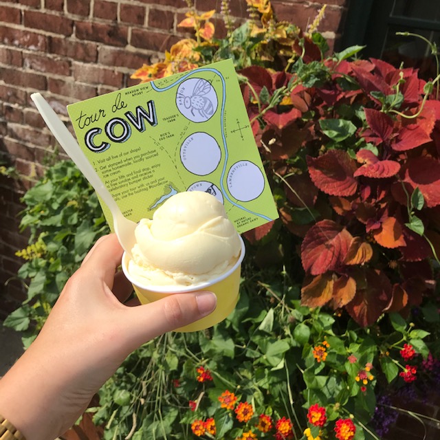 Small business, that is. Over the past few months, I have been repeatedly impressed by the ingenuity and creativity of small businesses to adapt to circumstances that I’m sure were never a part of any contingency plan. One of the most indulgent and delicious business moves has been from Bucks County ice creamery, Owowcow. Taking a favorite page out of every 20something’s playbook – the bar crawl – the small collection of shops created their own Tour de Cow. Guaranteed to generate both cheer and cash flow, Owowcow issued a challenge to it’s customers to visit all five of their locations in order to win, what else, more ice cream! Evidence has shown that social media bragging rights have also been a big draw. Like any good challenge, this one provides a way to up the ante. If you visit all five outposts in one day (and show your receipts to prove it) you are also rewarded with a free, exclusive t-shirt. The gauntlet had been thrown, the prizes revealed and I was up to the challenge. I recruited a trusty sidekick to pilot the Hyundai Elantra, packed the Lactaid pills and set out on an ice cream road trip adventure.